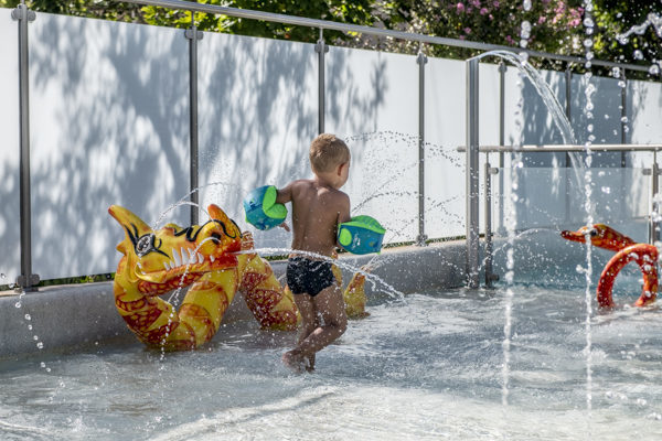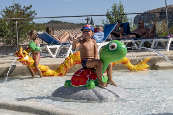 Our water park features a large pool, a spa pool, a small pool, a 47m-long water slide, a paddling pool, and an Aquatoons play area.